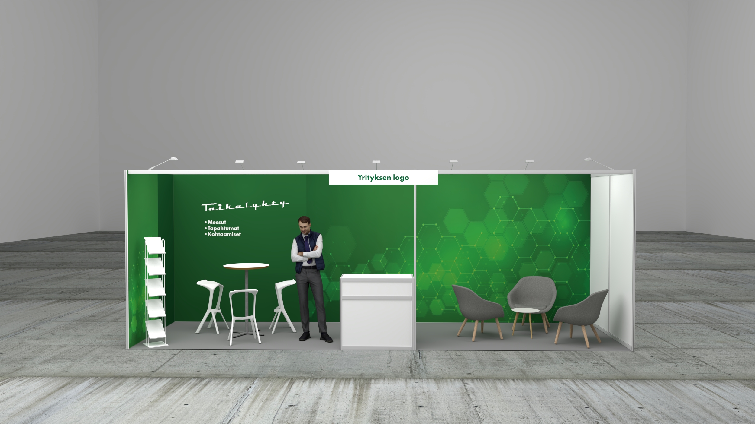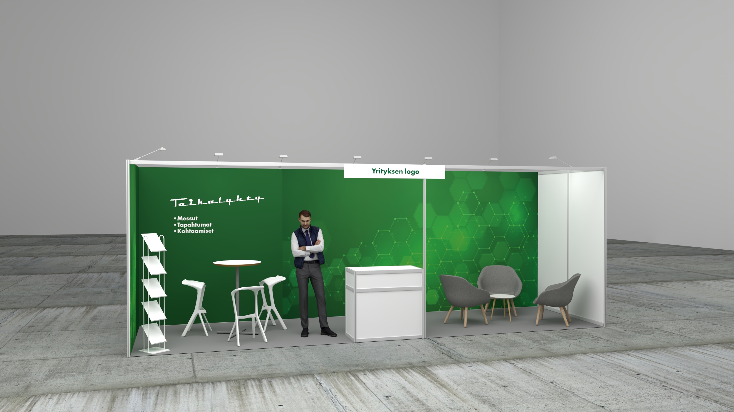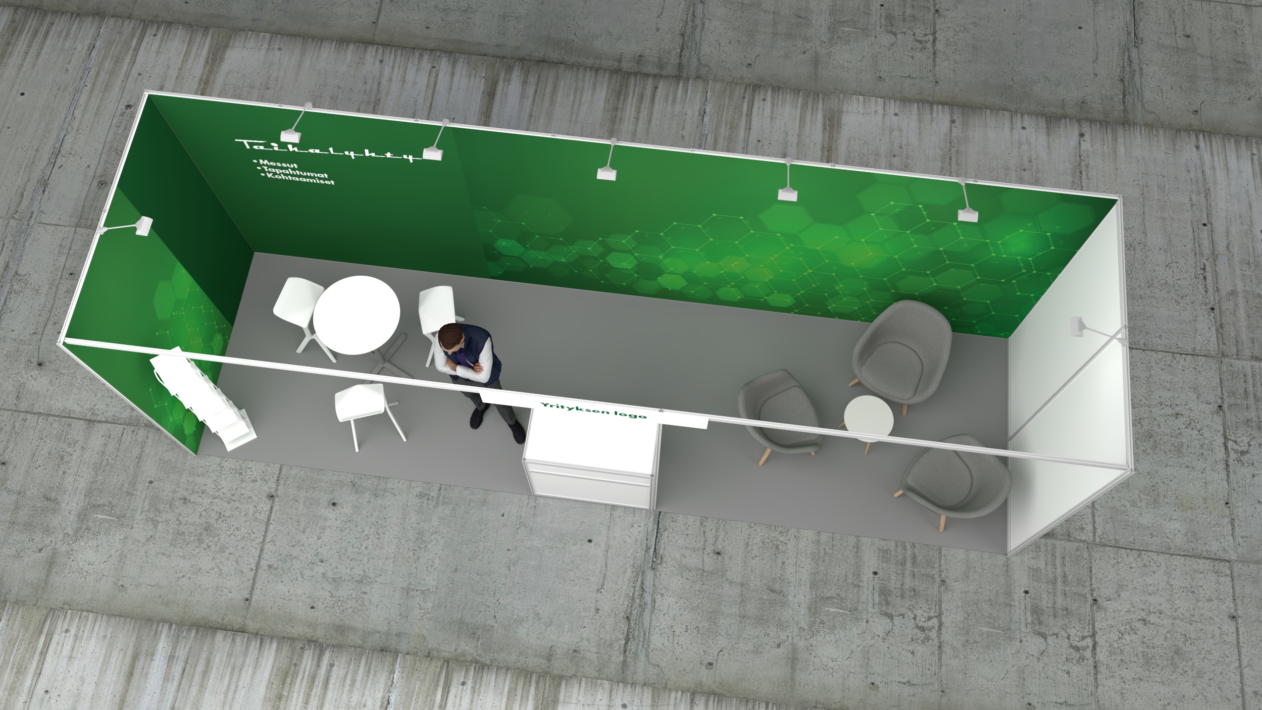 • Decotex -kangastuloste 9000x2500mm kahdella seinällä