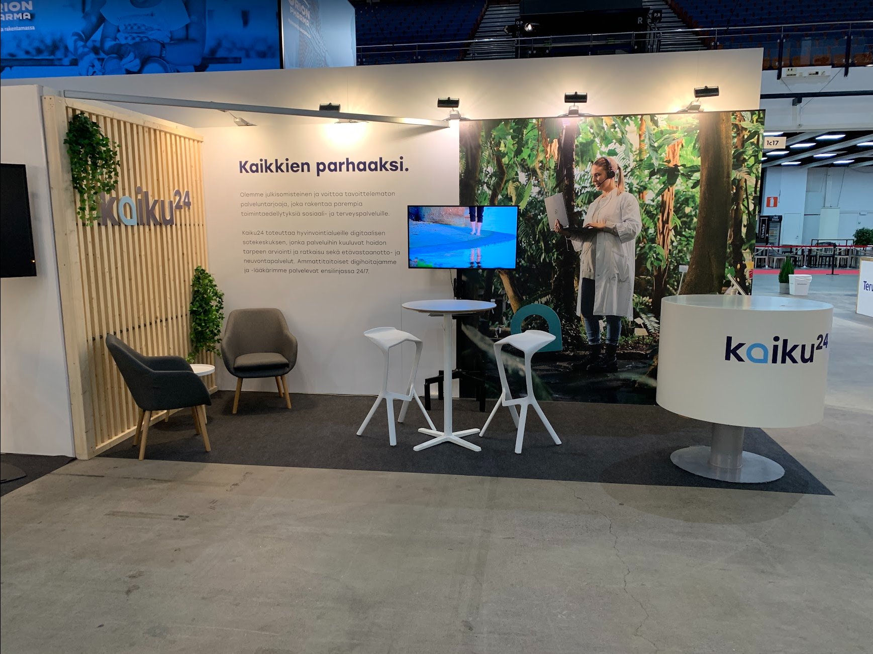 One width meter of branded back wall + a display light on top. Including the structure + all work.