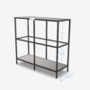 Tyylikäs musta matala esittelyhylly. Päälli- ja alataso mdf -levyä, välihylly lasia.