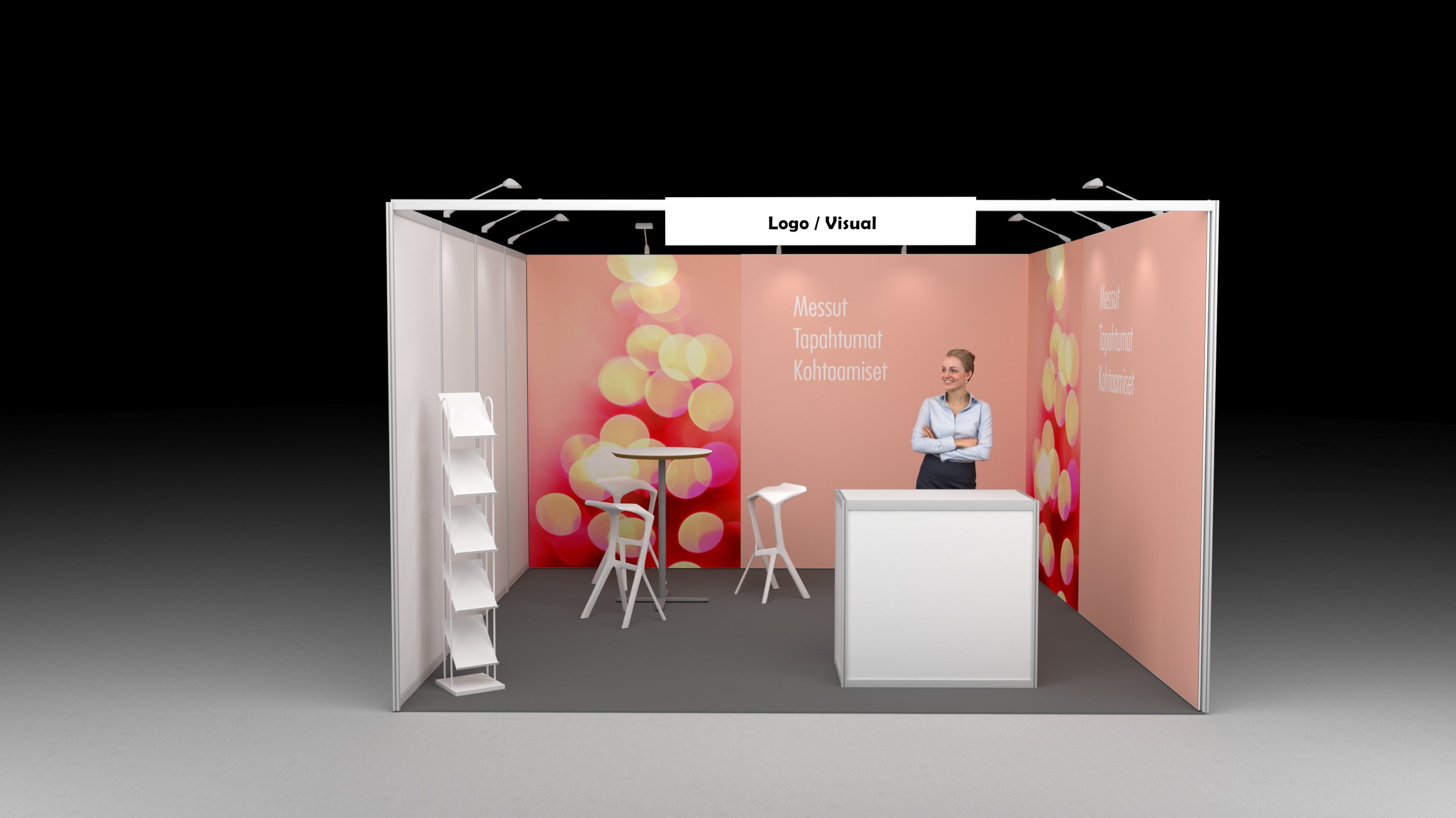 • Decotex -kangastuloste 8000x2500mm kahdella seinällä (lisäseinän tuloste + 450€)